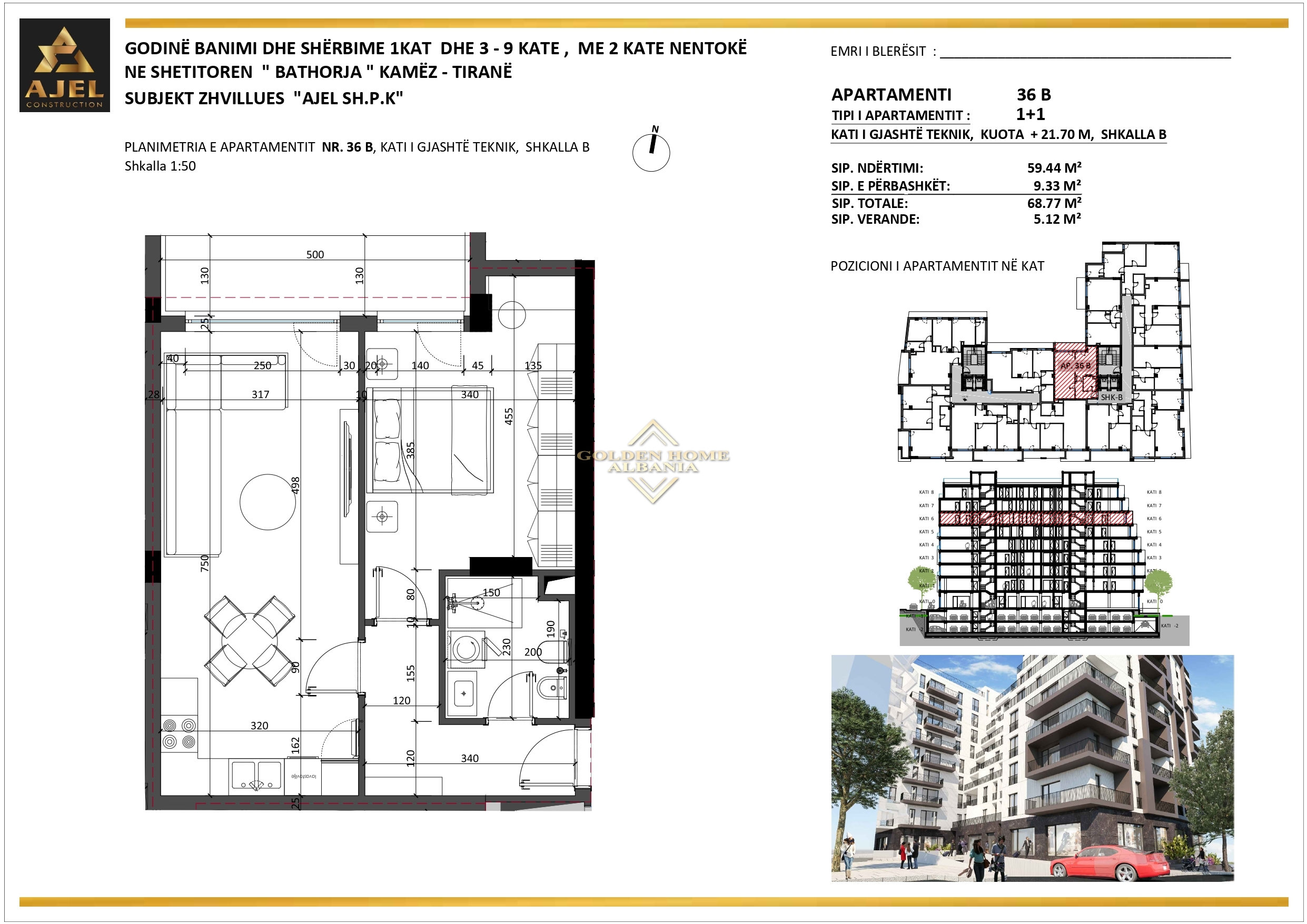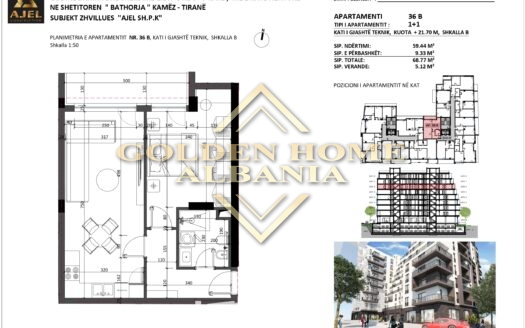 Shitet apartament 2+1+2 ne Kamez! Apartamenti ka siperfaqe 107.53m² dhe organizohet nga nje sallon se bashku me ambjentin e gatimit me dalje ne ballkon, dy dhoma gjumi ku ajo matrimoniale disponon tualet me vete dhe nje tualet i perbashket. Prona ndodhet ne nje pallat te ri ne ndertim ne faze shtrimi. Polaris Residence përbëhet nga godina banimi dhe shërbimesh me 7 dhe 8 kate, si dhe një kat nën tokë. Objekti është ndërtuar me cilësi të lartë sipas standarteve moderne evropiane, duke garantuar komoditet, qëndrueshmëri dhe jetëgjatësi. Rezidenca ndodhet pranë Bashkisë së Kamzës, në një zonë strategjike me akses të menjëhershëm në transportin urban dhe të rrethuar nga shërbime publike si qendra shëndetësore, shkolla, çerdhe, supermarkete dhe të gjitha lehtësitë e nevojshme për një jetesë të rehatshme. Objekti ofron një standard të lartë ndërtimi modern dhe bashkëkohor, duke përfshirë termoizolim cilësor dhe izolim akustik për një jetesë të qetë dhe komode. Apartamenti shitet bosh, duke i dhënë blerësit mundësinë ta arredojë sipas preferencave personale. Vetratat me xham të dyfishtë sigurojnë kursim energjie dhe reduktim të ndjeshëm të zhurmave të jashtme, ndërsa ashensori i instaluar në objekt ofron lehtësi maksimale në lëvizje. Zona ku ndodhet është mjaft e aksesueshme dhe e preferuar për banim, duke kombinuar qetësinë me avantazhin e afërsisë me shërbimet kryesore të përditshme. Cmimi 900€/m². Per nje vizite ne prone kontaktoni 069 626 5555 / 069 202 1009